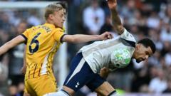 Tottenham's hopes of achieving Premier League survival are dealt a devastating late blow as Georginio Rutter scores a 95th-minute equaliser for European-hopefuls Brighton.